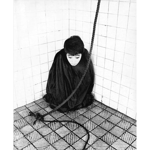"To" (Slaughter) features images of Yoko Wanibe, whom Fukase accompanied to a slaughterhouse, juxtaposing the dismemberment of livestock with Yoko posing in a black cloak. "Kotobuki" (Congratulation) straightforwardly depicts his life with Yoko shortly after they got married, in a manner reminiscent of a private novel. "Gi" (Frolic) portrays the underground scene in Shinjuku where Fukase had gone after leaving the home he shared with Yoko, and the lifestyle of young people living together as a group. "Mei" (Memento), one of his earliest works, looks back on the pregnancy of his former partner, Yukiyo Kawakami, with whom he lived for eight years. Meanwhile, "Haha" (Mother) and "Fu" (Music) capture scenes of Yoko and her mother.